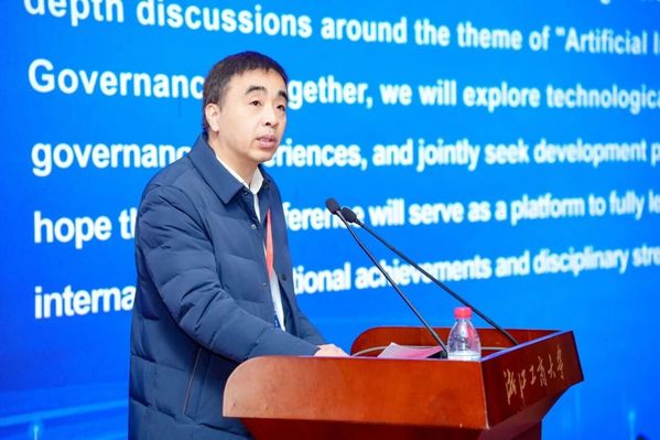 浙江工商大学党委委员、宣传部部长严毛新在会议上致辞,代表浙江工商大学预祝会议圆满举办,对出席会议的海内外专家学者表示诚挚的欢迎。他表示,人工智能已成为全球科技竞争的重要焦点,学校紧扣人工智能发展浪潮,在学科建设与科研创新上实现多项突破:计算机学科获批一级学科博士点,统计与数学学院升级为统计与数据科学学院,与联合国统计大数据和数据科学全球中心、之江实验室共建“数据科学联合实验室”;自主研发的“商学智脑”成功入选教育部全国首批人工智能教育专用大模型,成为浙江省唯一获此殊荣的高校;率先发布全国首个基于大语言模型的社会科学实验装置,其共同富裕统计监测与智能治理实验室也获批教育部哲学社会科学实验室。他强调,学校以2004年习近平同志视察时的重要指示精神等为根本遵循,深耕产教融合与科教融汇,创新社会服务机制,其中2020年与英国萨塞克斯大学合作成立的国内首个人工智能领域中外合作办学机构成效显著,一批新机制学院也为产学研用积累了经验;针对会议主题,他指出人工智能发展对数据治理提出更高要求,期待与会专家依托学校国际化优势深化交流,共将会议打造成高端平台,为全球产学研用合作注入动力。
